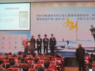 (本网讯)12月1日-2日,由国际工业工程学会举办,清华大学承办、东风日产协办的“2012年清华大学工业工程系中国制造业、物流业高峰论坛,暨东风日产杯-清华IE亮剑全国工业工程应用案例大赛”决赛在清华大学举行。本次大赛晋级决赛的高校参赛队6支、企业参赛队9支,其中西安工业大学机电工程学院晋级决赛的1件作品荣获二等奖。