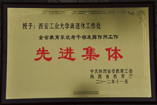 (本网讯)日前,中共陕西省委教育工委、陕西省教育厅下发了《关于表彰全省教育系统老干部发挥作用工作先进集体和先进个人的决定》。我校离退休工作处被授予“全省教育系统老干部发挥作用工作先进集体”荣誉称号。