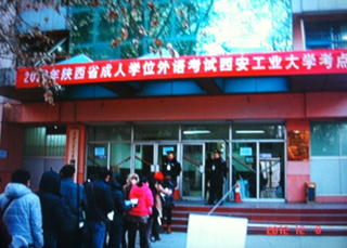 (本网讯)12月8日,2012年陕西省成人教育学位外语考试在西安工业大学金花校区进行。本次考试我校共有380名考生参加。2012年陕西省成人学位外语考试共设置了19个分考点,我校首次做为成人学位外语考试的考点,受到学校领导的高度重视。