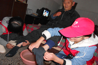 我校青年志愿者常年在草滩敬老院开展志愿服务活动。今年冬天,同学们还在学校开展了“爱心接力 传递温暖”活动,通过募捐给老人们送去了生活用品和自己精心制作的工艺品和问候卡,还采取了“一对一”的帮扶形式关爱老人。
