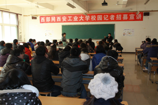 (本网讯)12月25日下午,西部网新闻中心总监刘晓斌先生一行3人莅临西安工业大学召开校园记者招募宣讲会,并就在我校建立学生记者站与学校党委宣传部进行磋商。