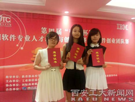 (本网讯)近日,从第四届“蓝桥杯”全国软件专业人才设计与创业大赛决赛上传来喜讯。由我校计算机学院王建国、徐飞、姚红革老师指导的团队作品《阳光行动--智能手环》获全国总决赛二等奖,西安工业大学在前期的省级选拔赛中获优胜单位奖和优秀组织单位奖。