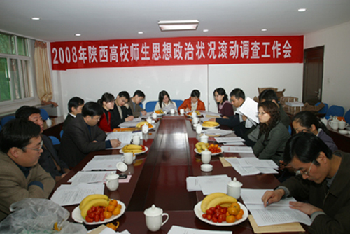 (本网讯)3月12日上午,省教育厅2008年高等学校师生思想政治状况滚动调查工作会在西安工业大学召开。省委教育工委宣教处副处长张玉明、西安交通大学、长安大学、西北工业大学等9所高校的学工部、宣传部领导参加了会议。