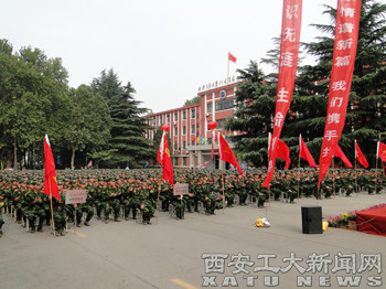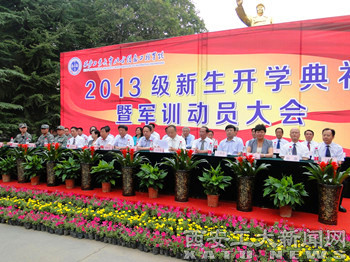西安工业大学校办、学院各职能处室领导、各系(部)主任、教师代表、辅导员及2000多名2013级新生参加大会。