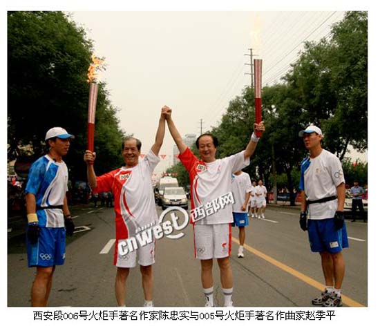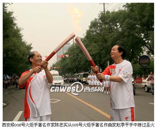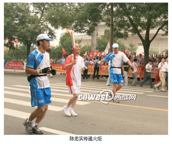 (本网讯)7月4日, 西安工业大学人文学院名誉院长、兼职教授、著名作家陈忠实先生在西安以第6棒完成了奥运火炬传递。