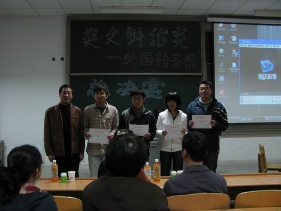 (本网讯) 由西安工业大学团委主办、外语系承办的第一届“西工杯”英文辩论大赛在经历了五场初赛、三场晋级赛、两场半决赛后于11月10日晚进行最后冠亚军的角逐,最终电信学院三年级队夺得冠军,电信学院四年级队及外语系分获亚军与季军。