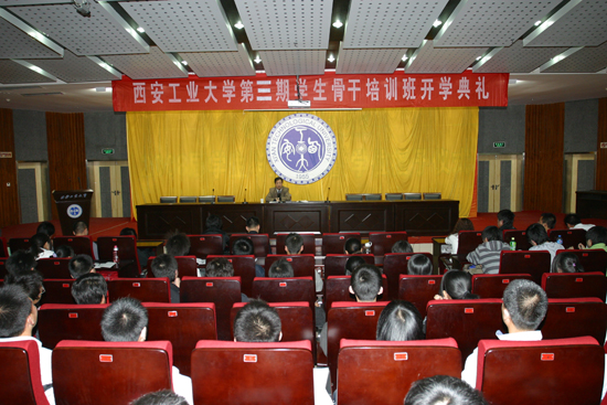 (本网讯)3月24日晚,西安工业大学第三期学生骨干培训班开班典礼在未央校区隆重举行。党委副书记丁养斌、团委副书记赵琼以及全校各院(系)200余名学生骨干参加了开班典礼。