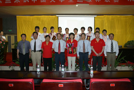 会上,体育系主任谷崎介绍了我校女篮的成长经历及夺冠经过。党委副书记丁养斌宣读了未央区委、区政府的贺信。校长刘江南宣读了表彰决定:授予体育系“优秀组织单位”称号;授予单瑞荣、高辉、刘鹏 “优秀教练员”称号;授予宋雷等十位运动员“优秀运动员”称号,并宣布从校长基金中拨出五万元奖励女篮。会上,校领导还为受表彰的教练员、运动员颁发了荣誉证书,并与他们一起合影留念。副校长张君安宣读了聘任“优秀教练员” 单瑞荣为我校双聘教授的决定,刘江南校长为其颁发了聘任证书。