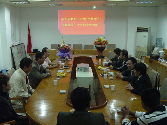 上级领导一行与西安工大教师、工会干部一起座谈,校党委副书记丁养斌和校工会副主席朱晋中、王贵祥参加了座谈会。丁养斌副书记对省教育工会领导在教师节之际来校看望慰问教职工表示感谢,向多年来省教育工会对西安工大的关心支持表示谢意。校工会主席徐雪芹汇报了学校工会近期主要工作。张敏主席说,教师工作是一项光荣而艰苦的工作,教师承担的责任重大,给与他们关心和帮助是教育工会应做的。与会的教师和基层工会干部代表发言,感谢上级工会对他们的关心。