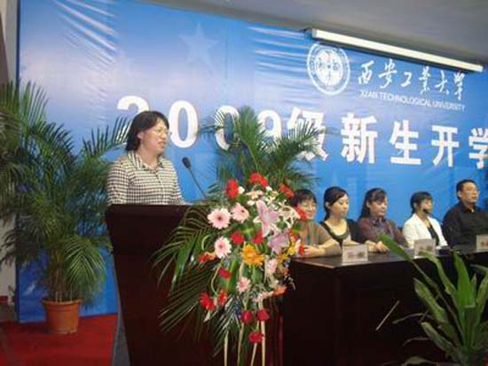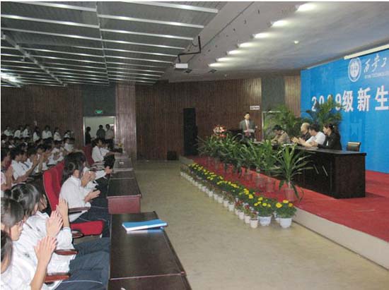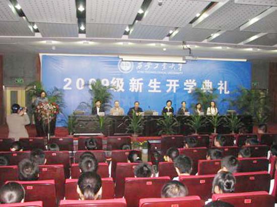 (本网讯)为保证有效防控HINI流感,遵照上级指示精神,9月17日,西安工业大学今年以各院系为单位分别举行了2009级新生开学典礼。校党委书记赛云秀、校长刘江南做电视录相致辞,代表西安工业大学向2009年新生表示热烈欢迎,并预祝同学们在新的学习环境中努力学习,求知奋进,顺利完成学业。