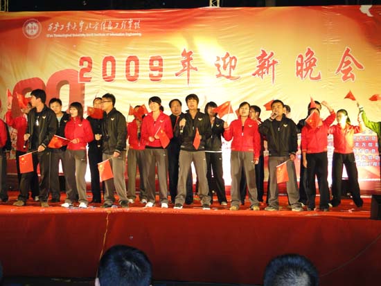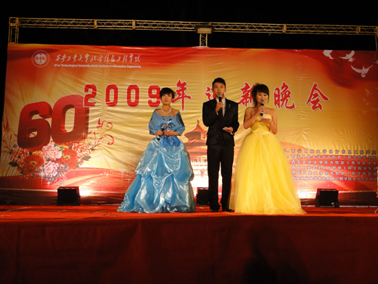 (本网讯)10月13日晚,西安工业大学北方信息工程学院2009年迎新晚会在洪庆校区隆重举行。副校长、北信学院董事张君安出席晚会,校党办、校办、团委、学生处、艺术与传媒学院及北信学院的主要领导和各职能处室负责人同洪庆校区的学生一起观看了演出。
