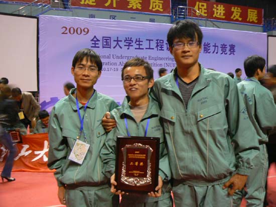 (本网讯)由高教司主办、大连理工大学承办的全国大学生工程训练综合能力竞赛首届竞赛于10月17日至19日在大连理工大学刘长春体育馆和工程训练中心进行。来自全国各地的国家级综合工程训练示范中心的33所院校和部分省级工程训练示范中心的25所院校总计58个代表队参加了竞赛。经过两天紧张激烈的角逐,由西安工大工业中心制造工程师实验班的代海、张超、崔雷明同学组成的代表队,获得总决赛二等奖。