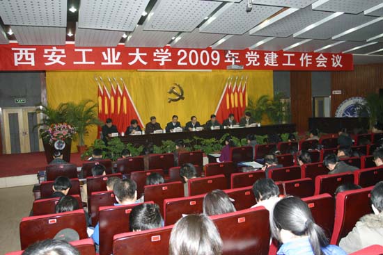 (本网讯) 西安工业大学2009年党建工作会于12月7日召开。校党委书记赛云秀,党委副书记、校长刘江南,党委副书记丁养斌,副校长张君安、刘建勋、刘卫国,校工会主席徐雪芹出席。组织部长李智军主持大会。