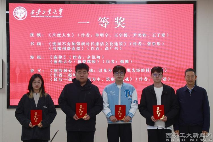 会上对微视频、书画、海报、征文等四类获奖作品进行了表彰。