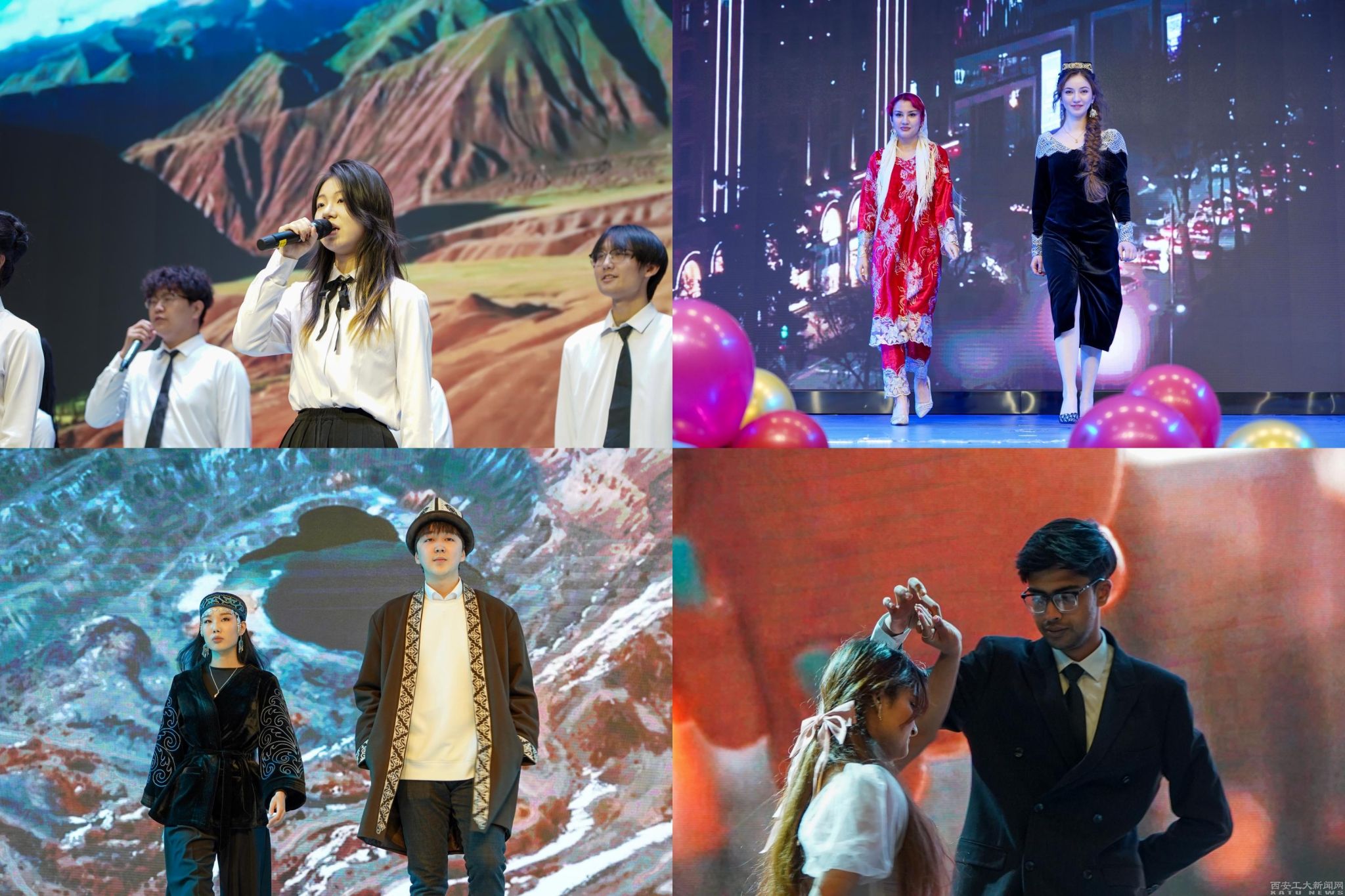 晚会分为“声韵交织”“舞动心弦”“欢聚无界”三个篇章。活动在中亚五国学生舞蹈和留学生外文歌曲演唱中拉开序幕,绚丽的舞姿和美妙的歌声展现了青春的活力和奋斗的激情。留学生龙和平、爱拉、希瑞等演唱的《今生缘》《月亮代表我的心》《All of Me》《Roar》将晚会一次次推向高潮,巴基斯坦舞蹈、尼泊尔舞蹈、非洲舞蹈和中外学生共同演唱的《明天会更好》充分展现了不同国家和民族的文化交融。最终本场晚会在中外学生《Fashion Show》节目中落下帷幕。