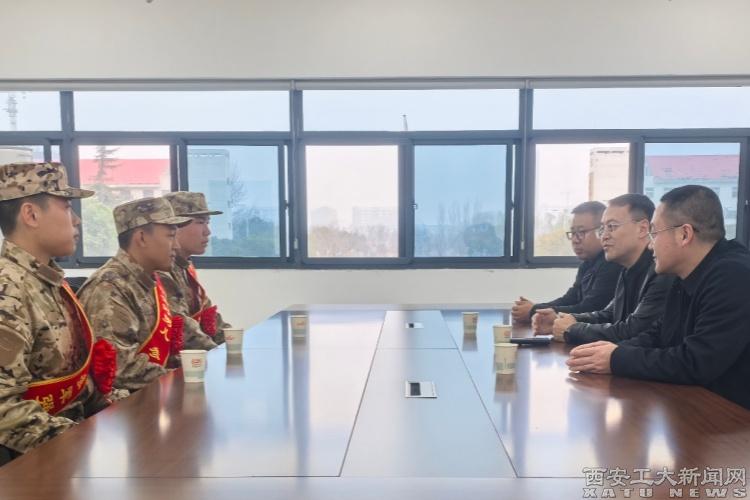 3月13日下午,我校2026年上半年入伍学生欢送会在西安市民兵训练基地举行。欢送会上,校党委副书记马福一行代表学校向我校入伍学生表示祝贺、赠送纪念品,并勉励大家要传承兵工精神,苦练胜战本领,早日成长为合格的新时代革命军人,同时表示学校将全力做好征兵各项政策落实和服务保障工作。三位入伍学生一致表态,将牢记校风校训,在军营淬火成钢,在战位建功立业,为母校增光添彩。