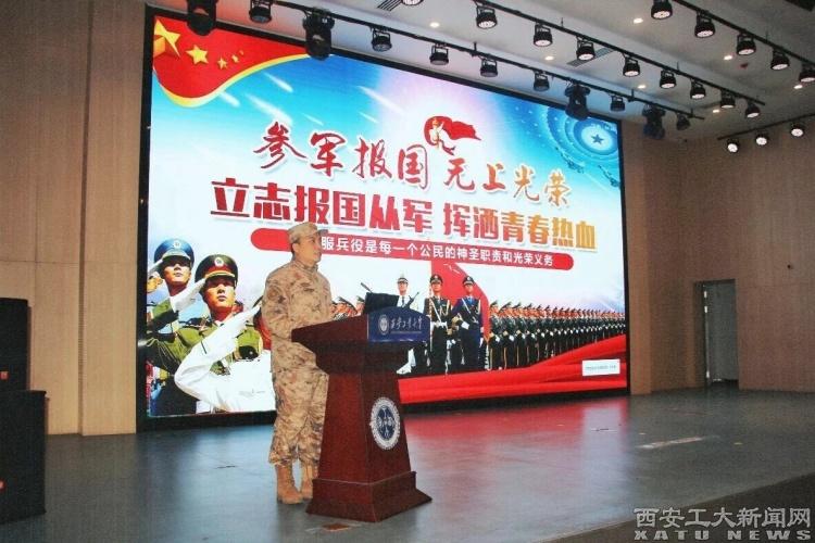 2026年上半年征兵宣传工作启动以来,学校先后通过官网、官微连续发布征兵倡议书、政策指南和“青春之我 不负韶华”宣传片。在经纬广场、学生宿舍等多处设立宣传点、张贴宣传海报、分发宣传手册,营造浓厚氛围。先后邀请未央区人武部来校作《强国必须强军,军强才能国安》主题宣讲,系统解读形势与政策;邀请优秀退役复学学生、曾服役八年的设计学院陈圆同学现场分享军营成长故事,以“身边人讲身边事”增强感染力。3月12日,学校联合未央区人武部特邀空降兵某部宣讲团进校,举办“以英雄之名,邀你共赴星辰大海”主题宣讲会。国旗护卫队也积极发挥国防教育先锋作用,除承担学校升旗任务外,还赴附属中、小学举行升旗及天安门广场国旗展示活动,进一步拓展了国防和爱国主义教育的辐射面。