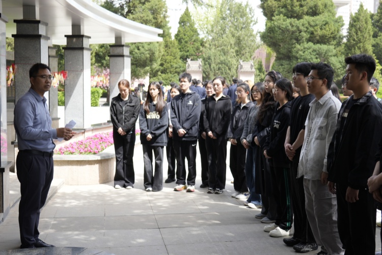 随后,大家来到英烈广场,文学院辅导员李聪为全体学生讲授现场思政课。他深情讲述了“西安九烈士”的悲壮事迹,回顾了抗日战争中的民族英雄宣侠父、刘桂五,抗美援朝时期志愿军八勇士的英雄壮举,以及当代大学生榜样张华烈士的先进事迹,用一个个鲜活的故事,展现了英烈们不畏牺牲、忠诚奉献的崇高精神,让同学们接受了一次深刻的红色精神洗礼。同学们纷纷表示将以崇敬之心践行报国之志,接过先烈的接力棒,勤奋笃行、奋发有为。