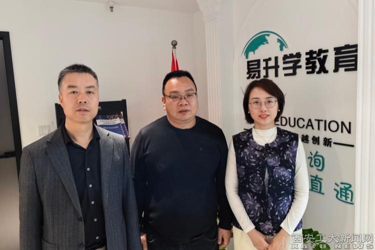 (本网讯)为进一步加强校企交流合作,拓展毕业生就业渠道,关心校友事业发展,4月10日,我校马克思主义学院院长梁华平、党委副书记程丹一行走访调研校友企业陕西易升学教育,陕西易升学教育总经理、学院2018级校友栗祥云热情接待。